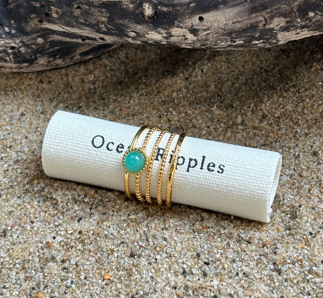 Amazonite Multi Band Adjustable Ring - 18ct Gold Plated