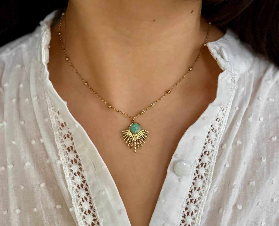 Amazonite Feather Pendant Necklace – 18ct Gold Plated