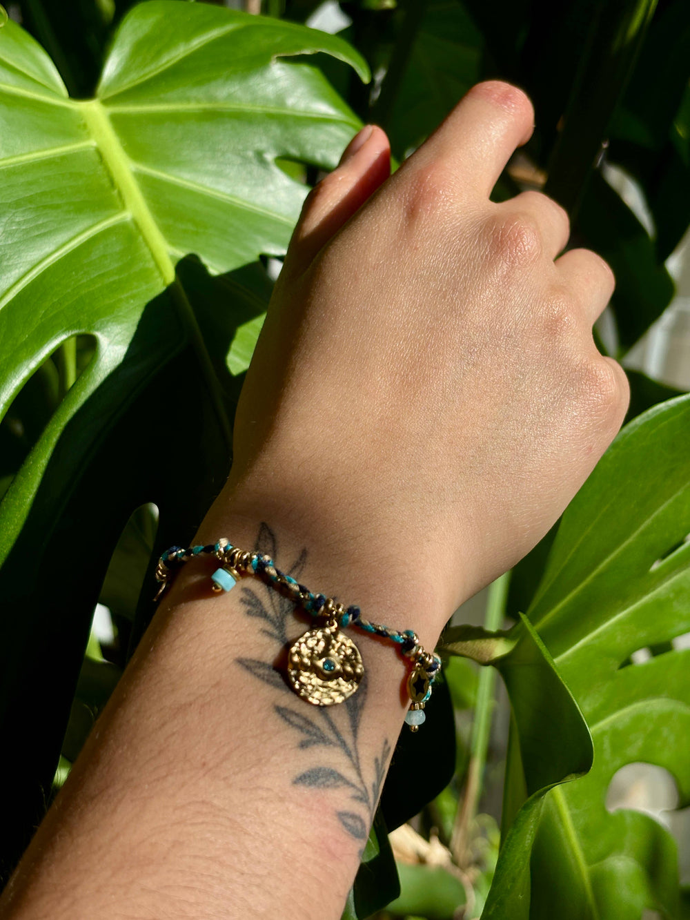 18ct Gold Plated Hammered Disc Rope Bracelet