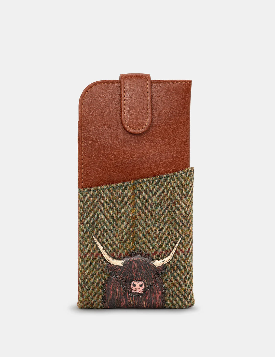 Highland Cow Harris Tweed & Brown Leather Glasses Case | YOSHI