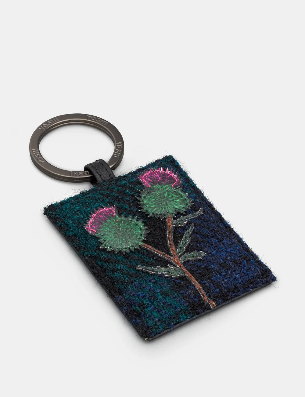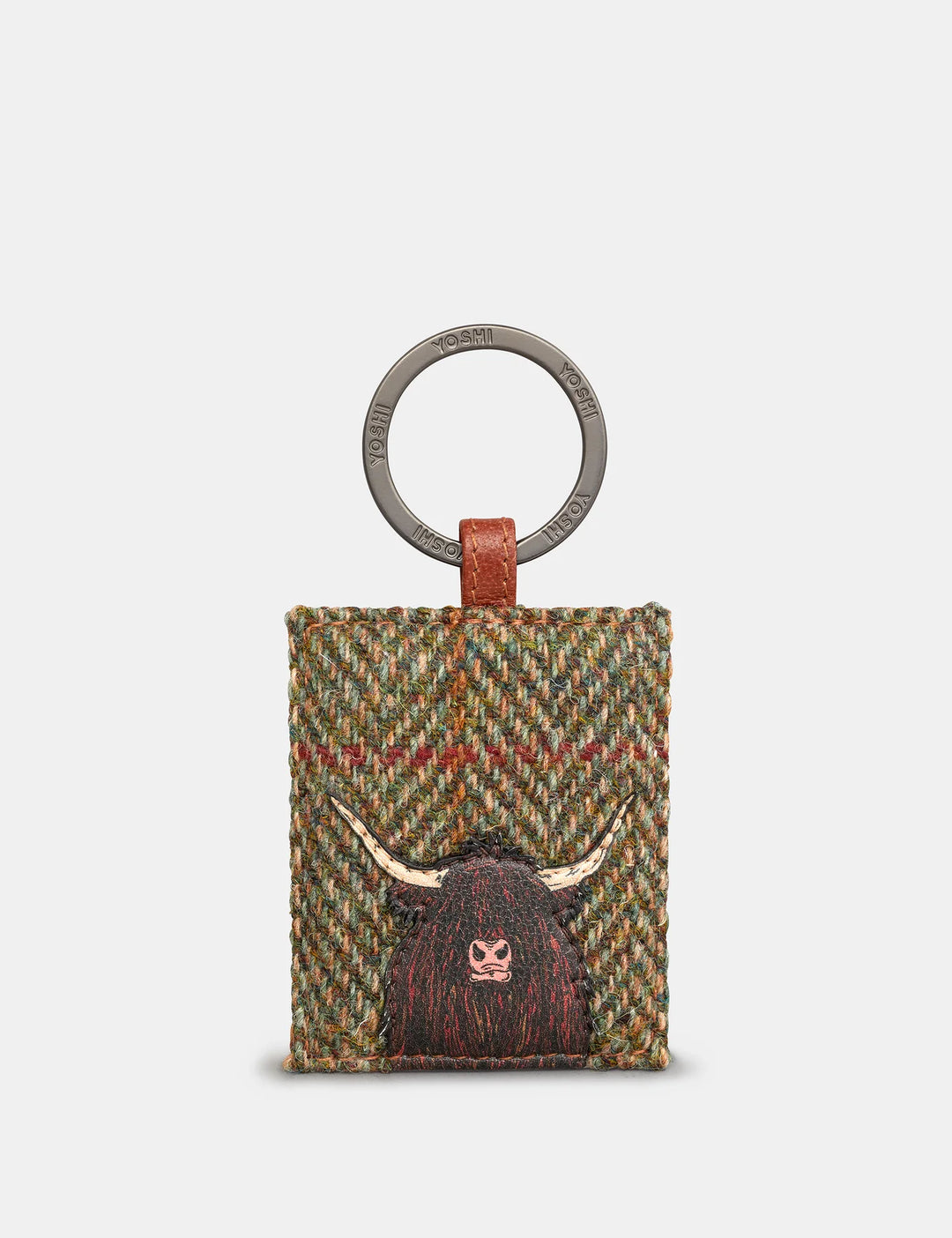 Highland Cow Harris Tweed & Brown Leather Keyring