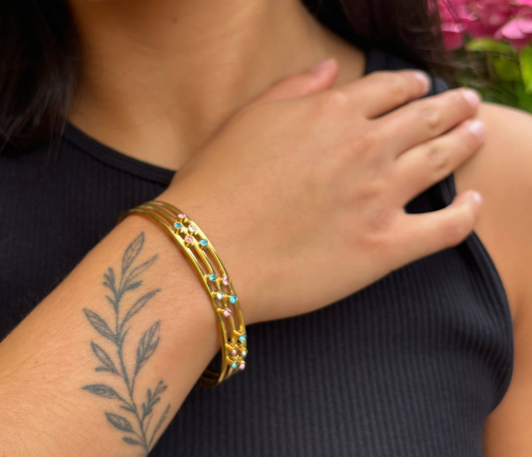 Multi-Colour Cubic Zirconia Bangle – 18ct Gold Plated
