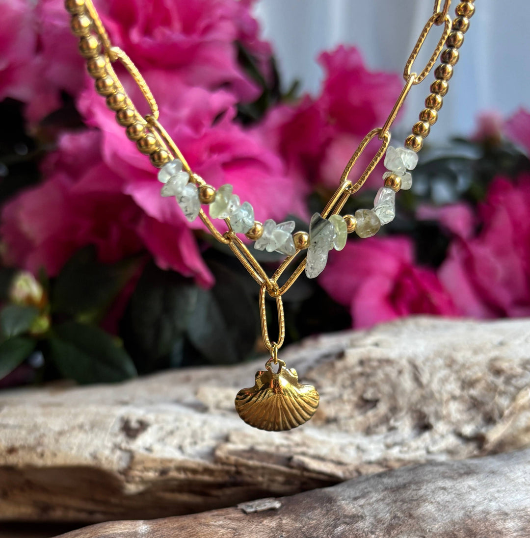 Ocean Ripples 18ct Gold Plated Green Aventurine Shell Bracelet