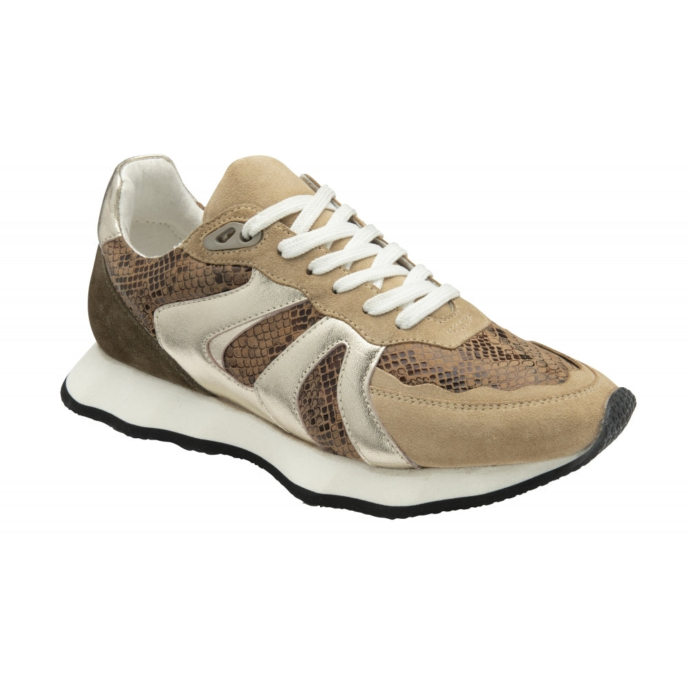 Ravel Beige & Gold Leather Innes Lace-Up Trainers