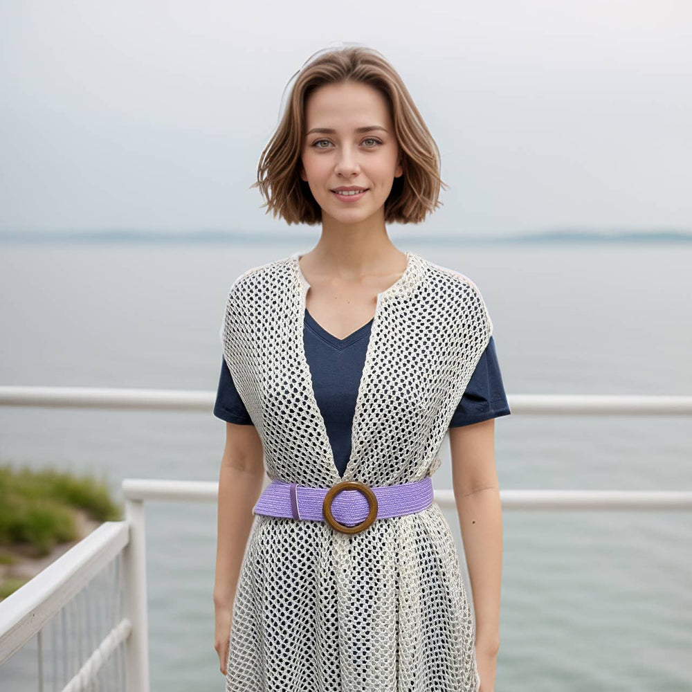 Purple Eco-Friendly Elasticated Paper Belt with Wooden Buckle
