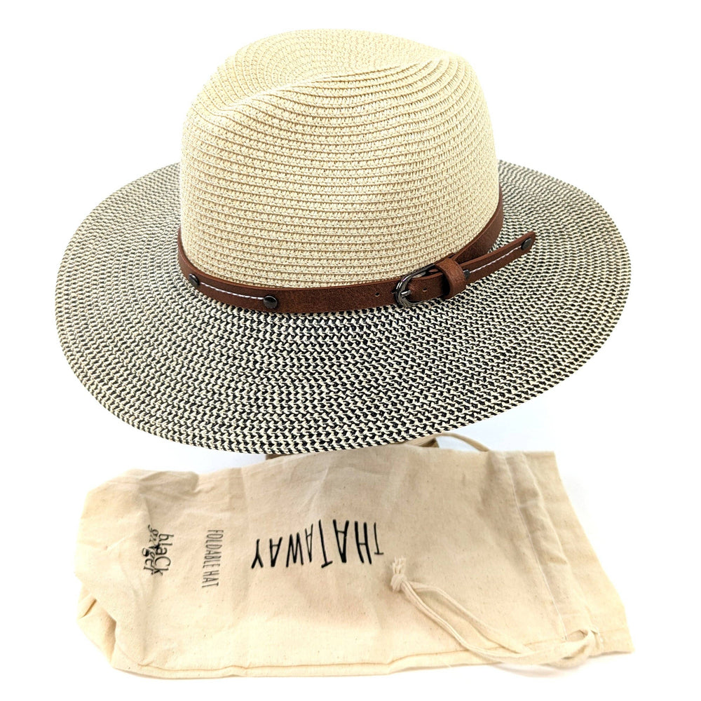 Folding Panama Travel Hat - Mottled/Natural with Belt