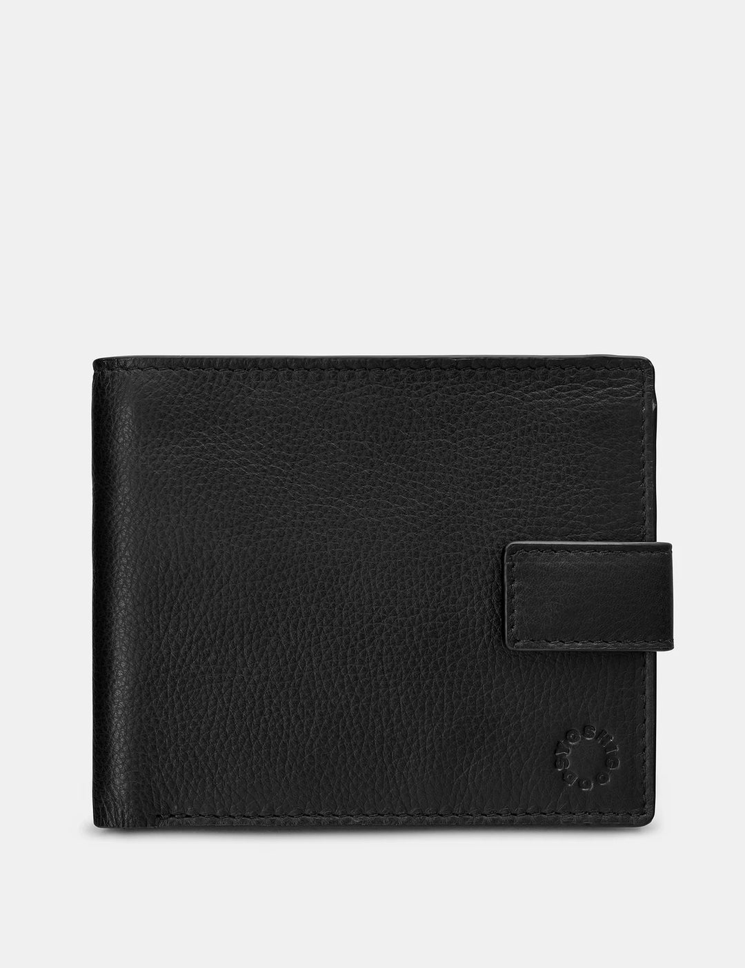 Two Fold Black Leather Wallet With Tab | YOSHI