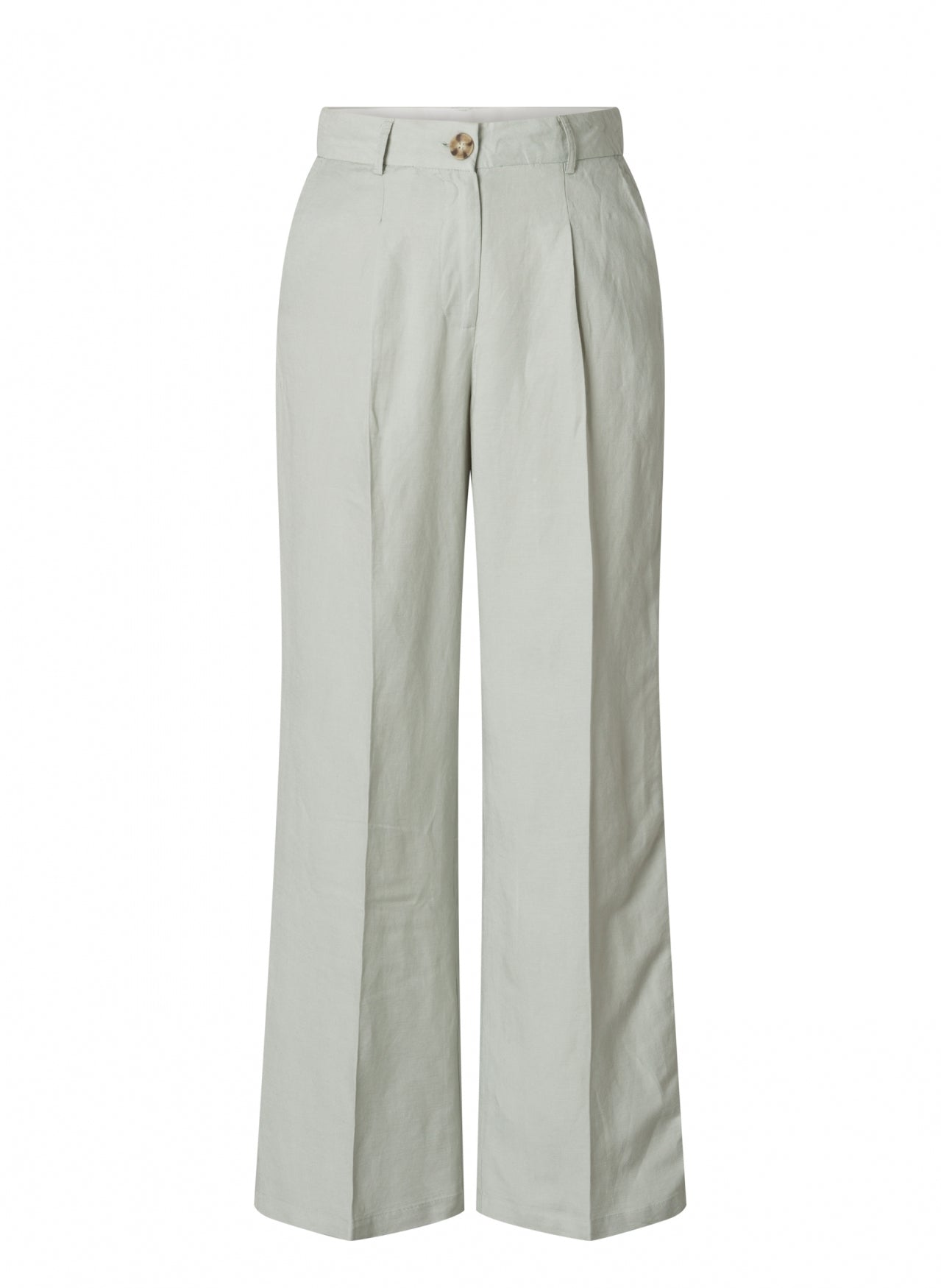 These wide-leg trousers are crafted from a breathable linen-viscose blend, offering a soft drape and effortless sophistication. The minimalist design is elevated by a subtle pleated waistband and delicate side slit pockets, giving them a polished yet relaxed vibe. Perfect for warm-weather styling, whether you're heading to the office or enjoying a sunny weekend.