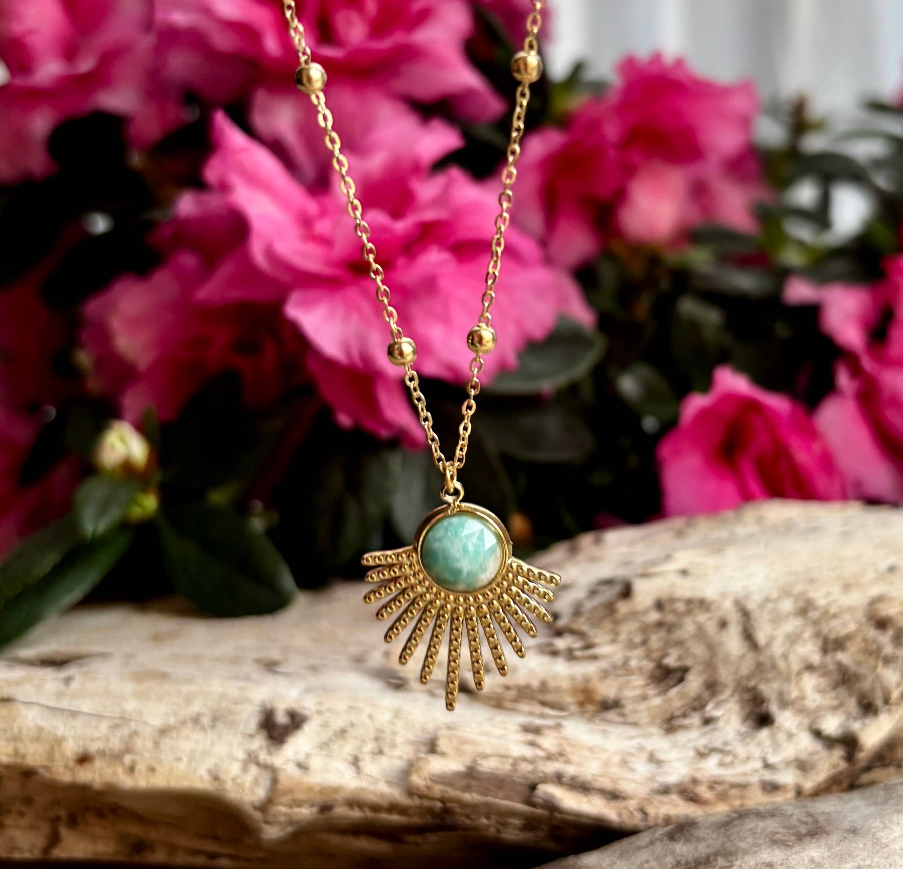 Amazonite Feather Pendant Necklace – 18ct Gold Plated