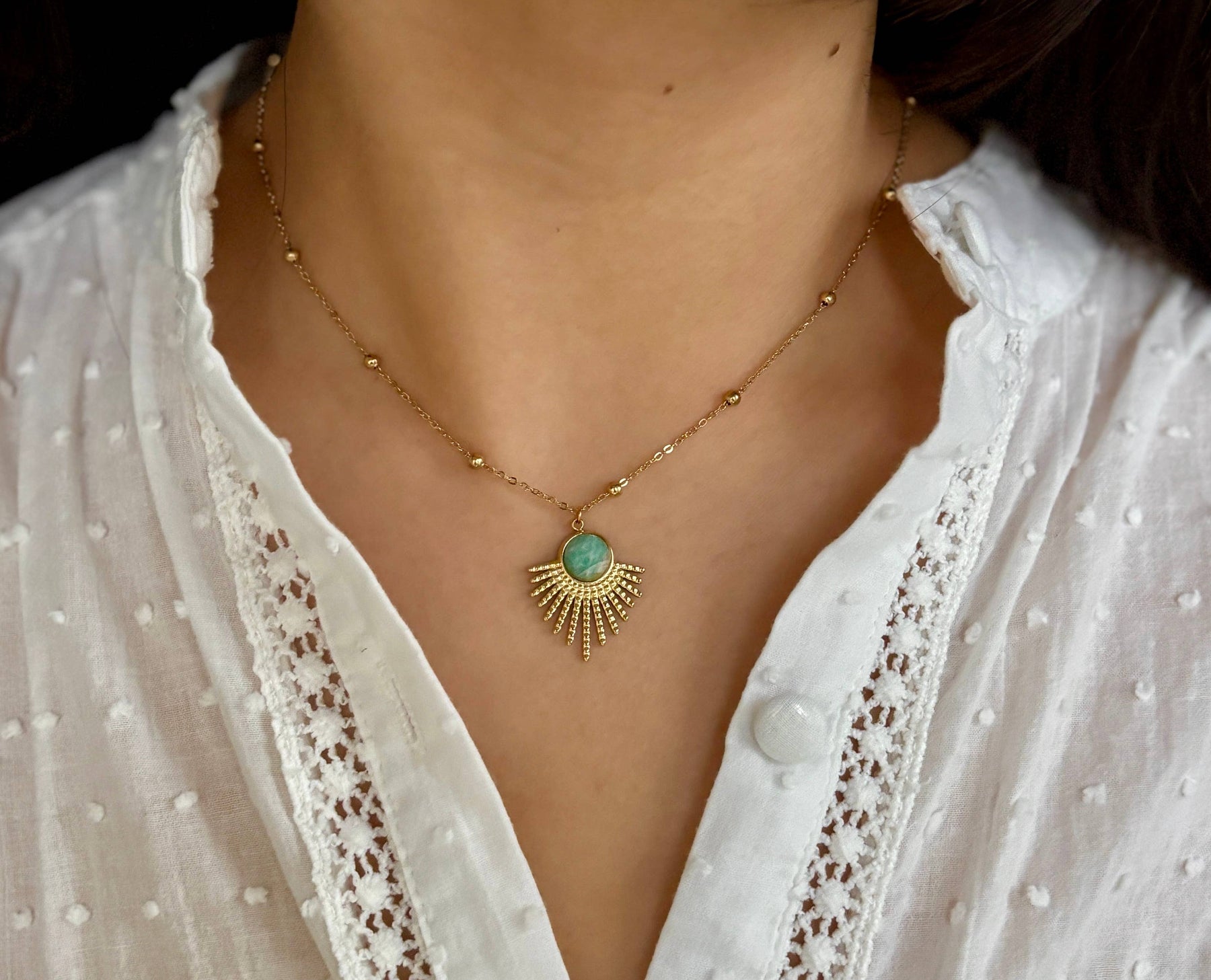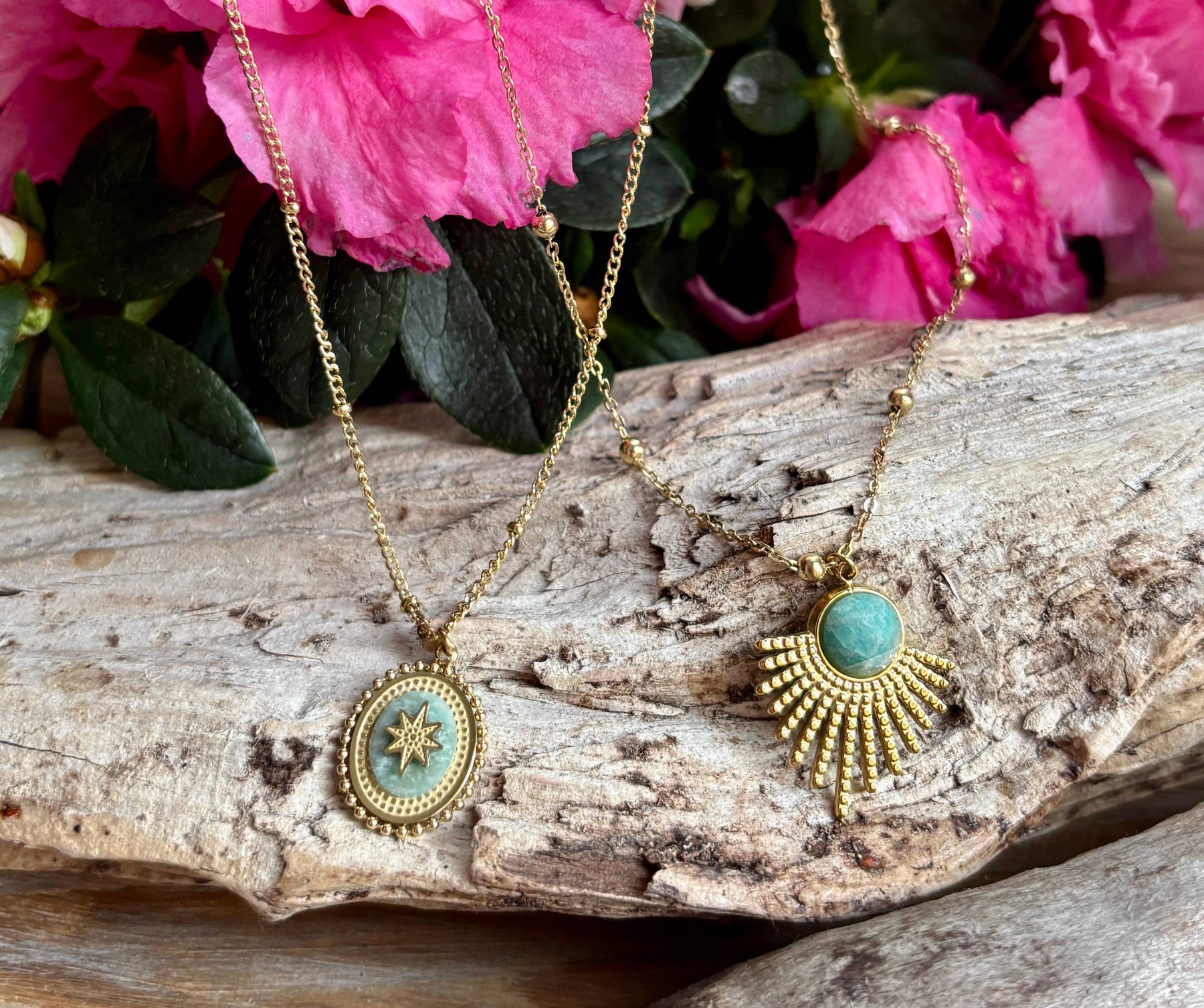 Channel calm, clarity, and boho-luxe style with this Amazonite Feather Pendant Necklace. Crafted from 18ct gold plated stainless steel, this eye-catching piece features a soothing amazonite gemstone and an intricately detailed feather charm—symbolising freedom, strength, and connection to nature.