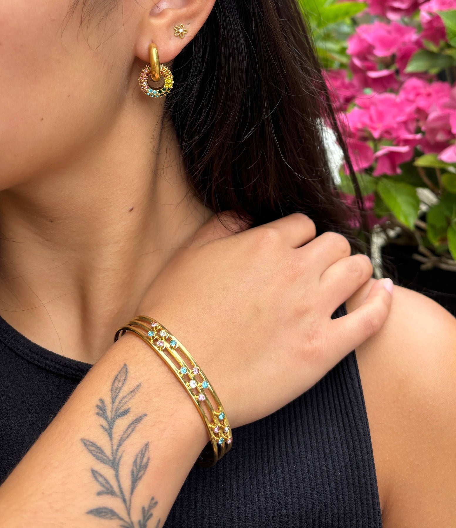 Multi-Colour Cubic Zirconia Bangle – 18ct Gold Plated