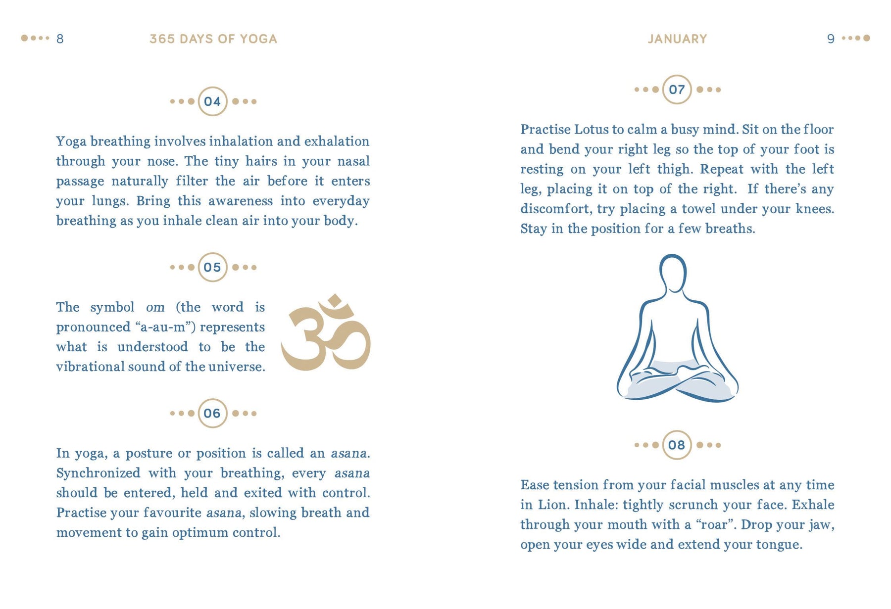 Inhale calm; exhale your cares. Find inspiration for your yoga practice every day with this book of uplifting quotations and insightful ideas to engage and energize both mind and body all year round.