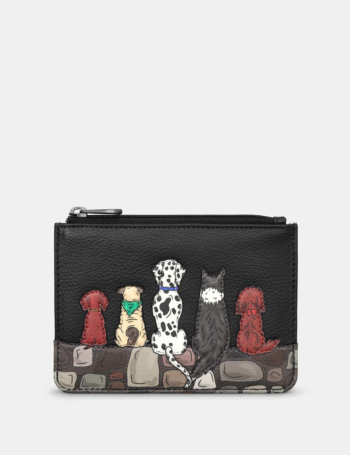 Keep it simple with this slimline leather purse for women from YOSHI that has been finished in a grainy black leather which accentuates the vibrant appliques on the front. This curious rabble of canine companions feature our favourite four-legged friends such as the Daschund, Pug, Poodle, Chihuahua, Dalmatian, Border Collie and Spaniel. Here they sit on top of an old stone wall which adds further detail to this women’s leather purse. The delicately drawn dogs on the front of this women’s leather zip top purse stir those feelings we have for our favourite four-legged friends and remind why we love to have them by our side. This purse has a zip top fastening and a very handy credit card slot on the outer and credit cards will also fit in the zip section. RFID protection is also included as standard for your peace of mind.
