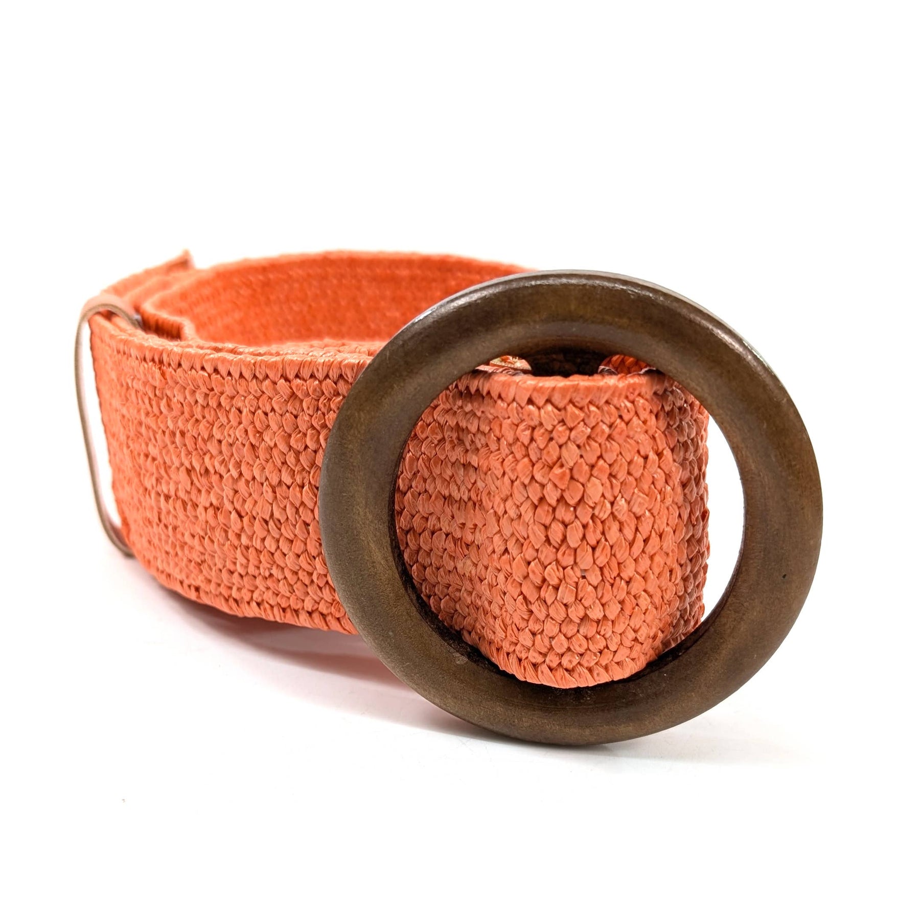This cheerful orange shade brings warmth and energy to your look, while the natural wooden buckle offers an earthy balance. Whether cinching in a floaty dress or adding shape to a loose shirt, this belt is a stylish statement that works across seasons.