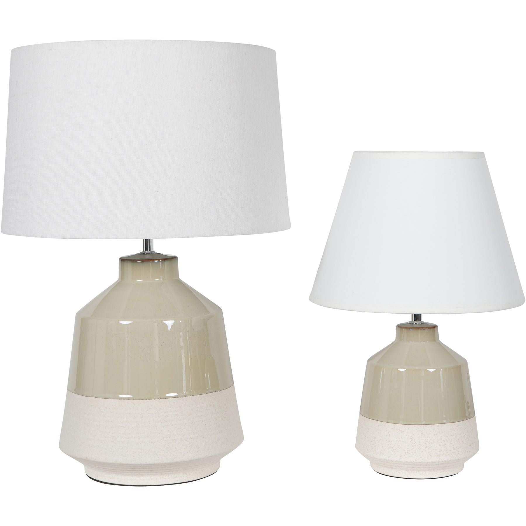 The Canterbury Table Lamp is made in ceramic, with a rustic stone coloured bisque fired base, topped with a beautiful creamy soft sage green glaze, on the top two thirds of the lamp base. The lamp comes complete with a Coolie Drum shade in linen. It stands 58cm tall and benefits from a 120cm black cable with an inline rocker switch. Requires 1x E27 Bulb, not included.