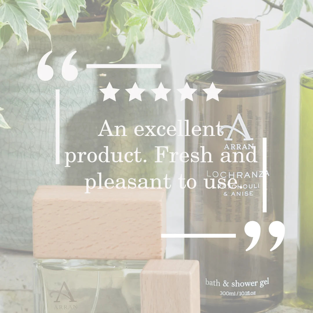 Subtle notes of florals dance amongst a base of spicy scents, creating the irresistible fragrance of Arrans men's Lochranza Bath and Shower Gel. An awakening yet comforting scent. Essential oils of patchouli and anise are paired with cedar and vetiver to create a powerful scent and a deeply nourishing formula that foams up to cleanse the skin and leave the body feeling ready for the day ahead. Enriched with pro-vitamin B5 for extra benefits to the skin, the Lochranza Shower Gel is a must-have treat for yourself.