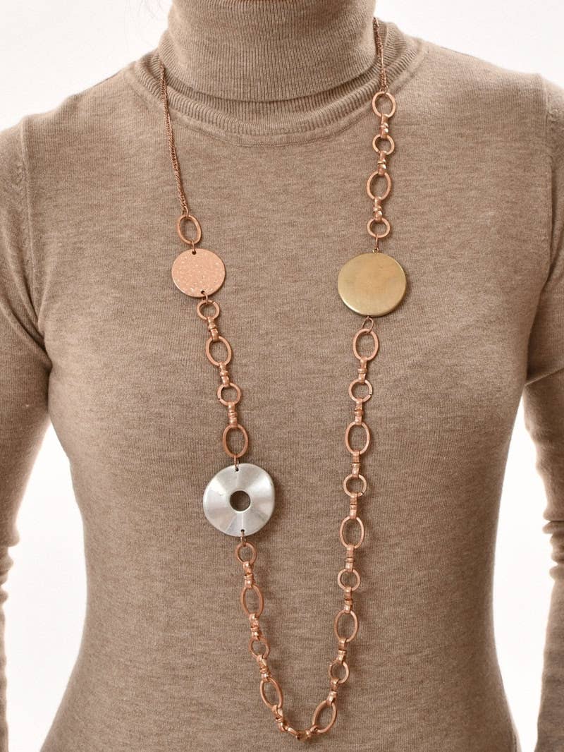 Long necklace with round plates